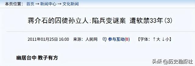 东谈主民网——蒋介石的囚徒孙立东谈主:陷兵变谜案 遭软禁33年(3)2011年01月25日