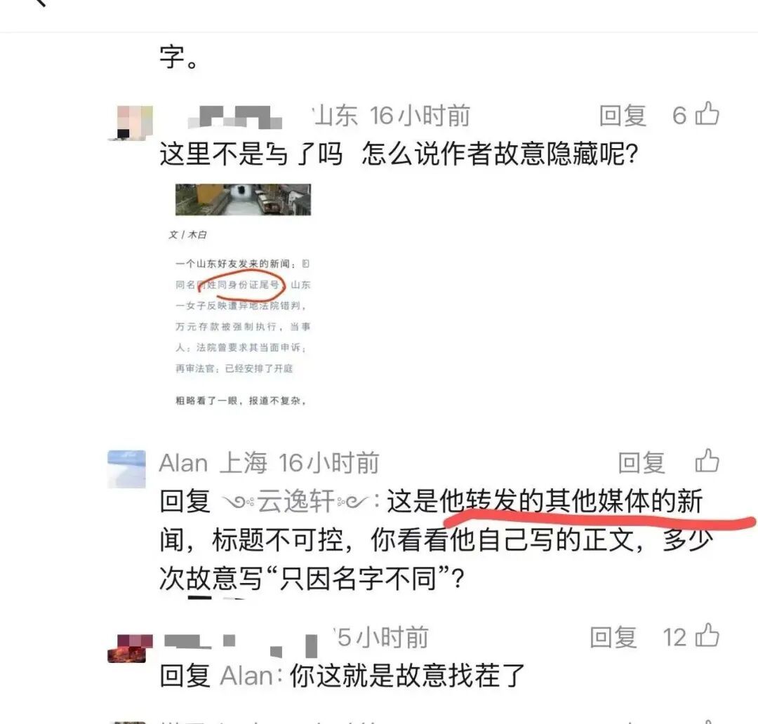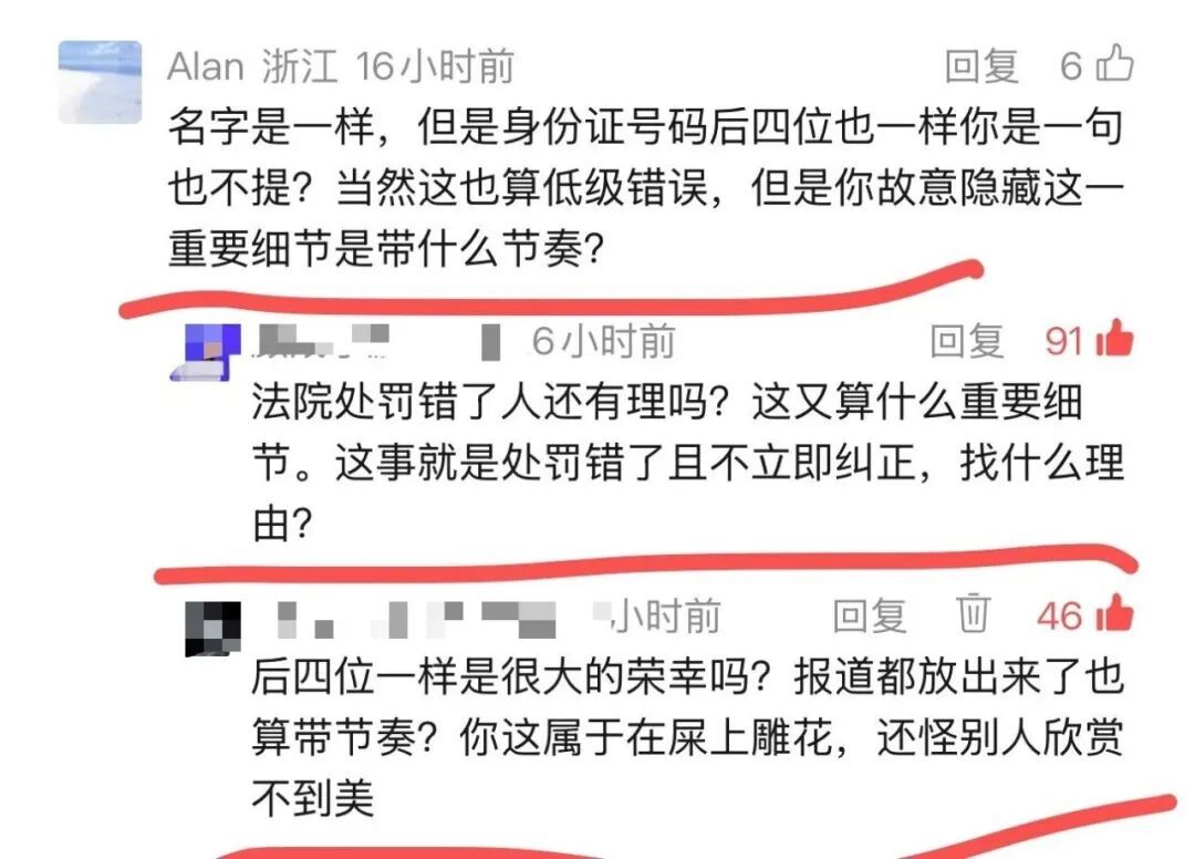 有兴味的是,昨天的著作被一个忽然浙江ID,忽然上海ID的东说念主挑缺陷。诸君看他缺陷的点,说我成心遮掩身份证的后4位数。然后这么一个法院犯下的初级诞妄,我说几句就成为坏心带节律了。