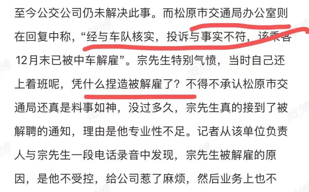 最离谱的是,在男人还在上班时间,松原市交通局办公室却提前复兴称,经与车队核实,投诉与事实不符,该乘客12月末如故被单元罢职!